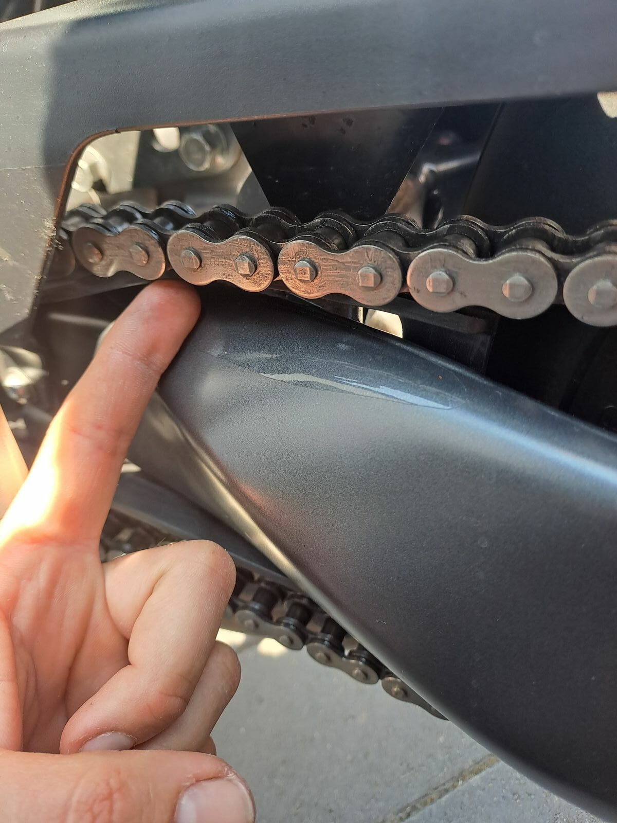 Ich habe in der englisch Sprachen FB-Gruppe gesehen, dass sich der Lack auf der Schwinge, durch die Gummikettenführung abschleifen.