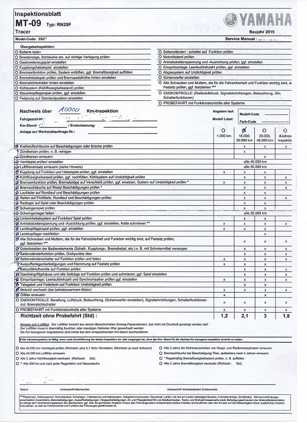 habe heute bei meiner Tracer auch die 1000 Inspektion machen lassen.