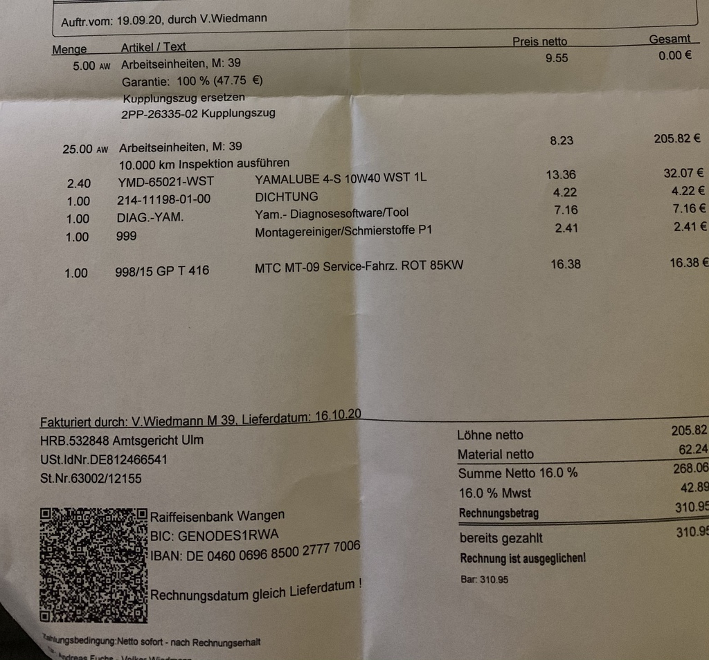 Alles anzeigenAls Öl wurde mir jeweils ein 15W50 eingefüllt. Ist mir vorher gar nicht aufgefallen, aber nachdem ich hier immer 10W40 lese...