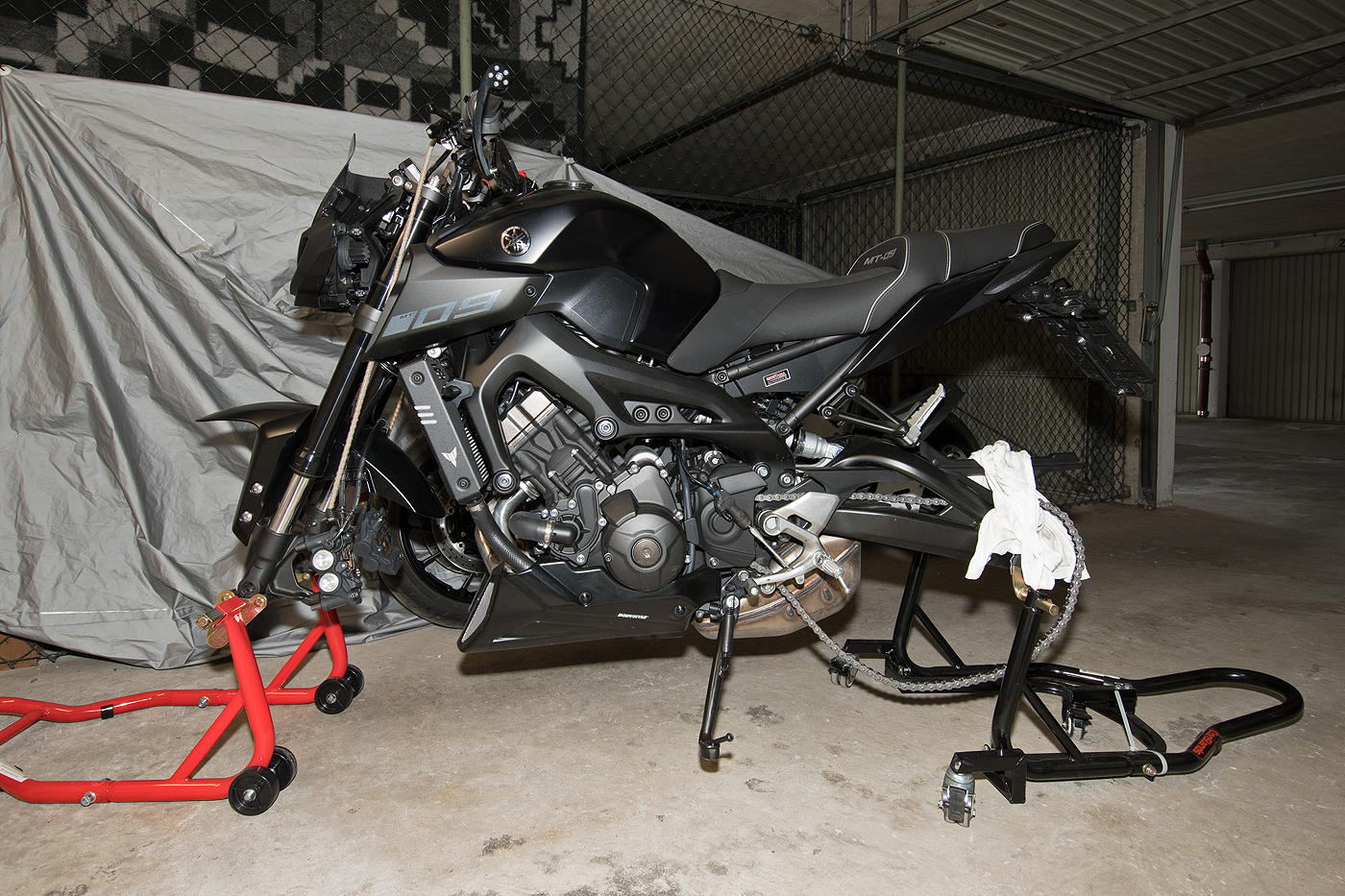 2. Räderwechsel bei Yamaha MT09 ohne Hauptständer (wegen Bodystyle Motorspoiler):