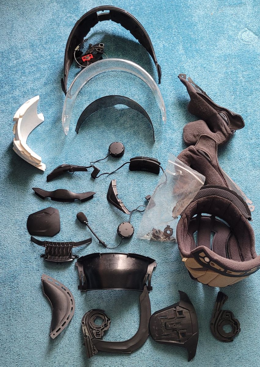 Für Bastler habe ich noch die unbeschädigten Teile meine Shoei Neotec 2 Excursion (Kinnteil, Polster, Visiere) mit Sena SRL2 für 50€, Versand: Päckchen 3,99€ oder Paket 5,49€.