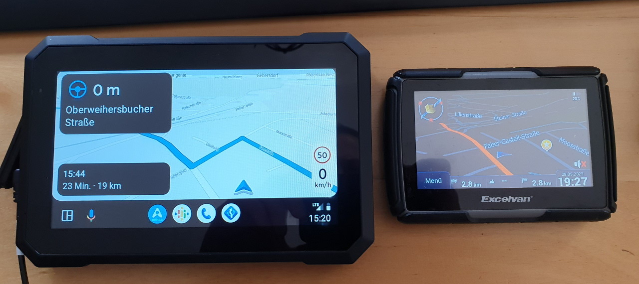 Wer es noch nicht kennt, die App ist auf ungefähr jedem Smartphone installiert. Es lassen sich beliebig viele Karten offline runterladen. Die Live-Verkehrsdaten sind die besten der Welt - die Ankunftszeit ist beängstigend präzise, selbst zur Rush Hour im Ruhrgebiet, wenn eigentlich überall Stau ist, und es werden oft gute Stauvermeidungen empfohlen. Außerdem sind die meisten Sperrungen aller Navi-Apps eingetragen, und die Suchfunktion ist die beste der Welt: Nach drei Buchstaben weiß das Ding meistens schon, wo ich hin will, es gibt Kategorien, es werden auch Kontakte im Telefonbuch berücksichtigt, und es warnt mich, wenn ich ein Geschäft anfahren möchte, aber außerhalb seiner Öffnungszeiten ankommen würde bzw. knapp vor Ladenschluss. Leider ist es eine Autonavi-Software, die nichts über Kurvenstrecken, Streckensperrungen, Passknackerpunkte usw. weiß. Also schnappe ich mir diverse Navi-Apps für Android.