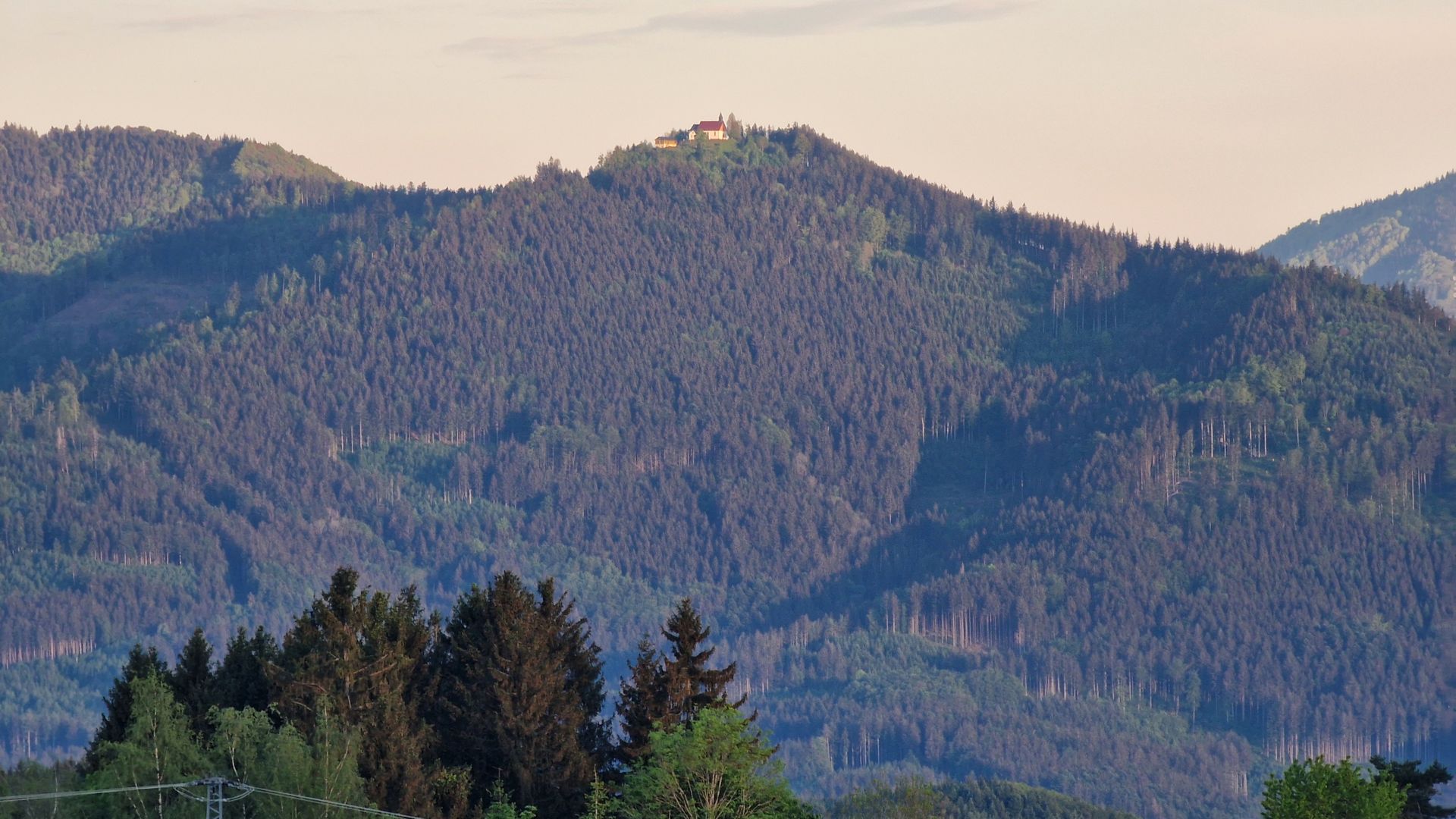 Man sieht von hier den Hörnleberg mit der Wallfahrtskirche - Unseren lieben Frau vom Hörnleberg.