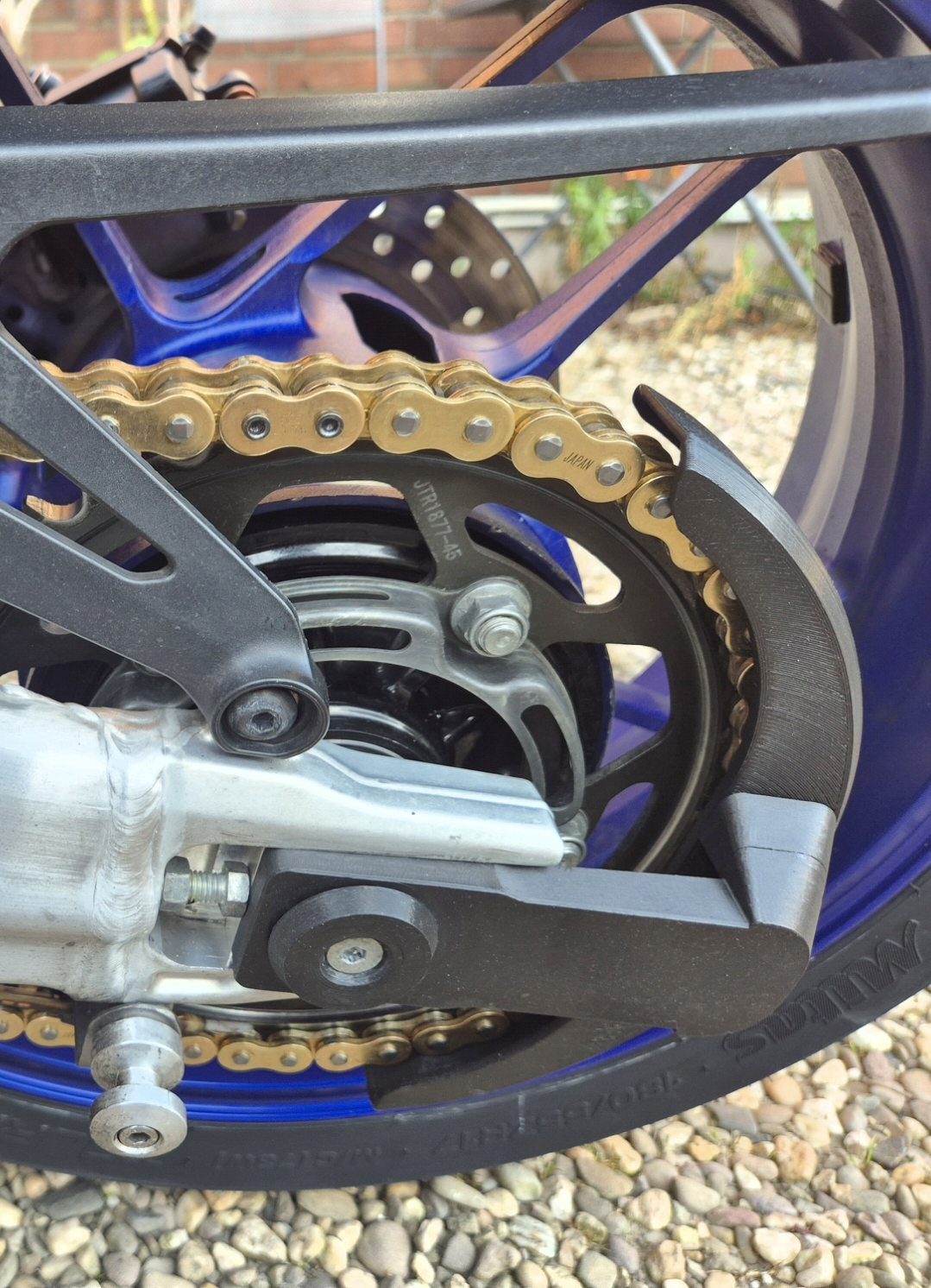 da habe ich die Kette gereinigt ( eigentlich nicht nötig, da der Kettenöler einen mega Job mach ) außen entfettet und die goldenen Außenseiten gewachst.
