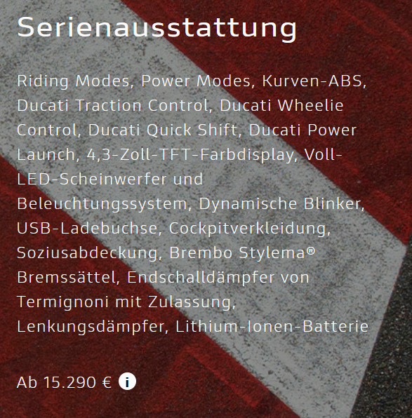 Die Ducati kostet 15595€