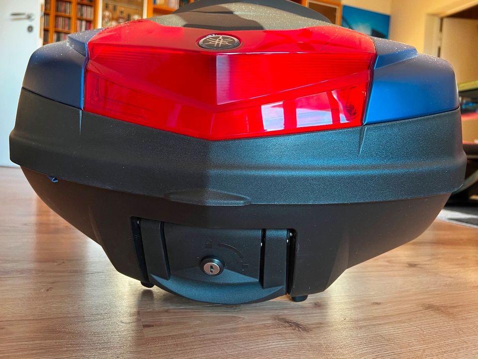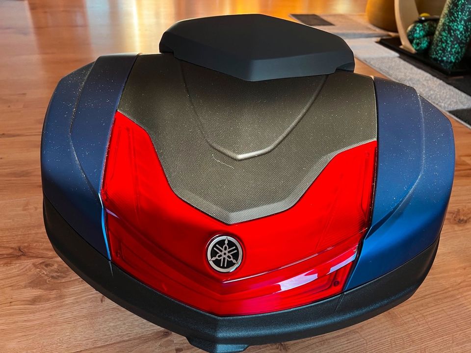Original Yamaha 50L TopCase mit Rückenlehne und farbigen Seitenteilen in blau MDPBM1 Phantom blue und 2 Schlüssel.