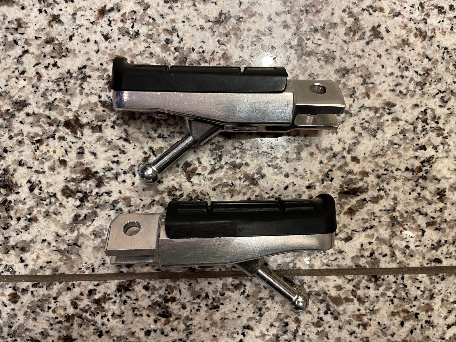 Yamaha Tracer 9 GT, Baujahr 2023 (RN70). Die Fahrer-Fußrasten (links und rechts) wurden direkt nach der ersten Fahrt (ca. 40km) von meiner fabrikneuen Yamaha Tracer 9 GT demontiert, weil ich persönlich nicht damit klar kam (*Monk). Sehr wahrscheinlich, aber ohne Gewähr, dürften die Fußrasten auch bei zahlreichen anderen Modellen passen; ihr checkt das schon.