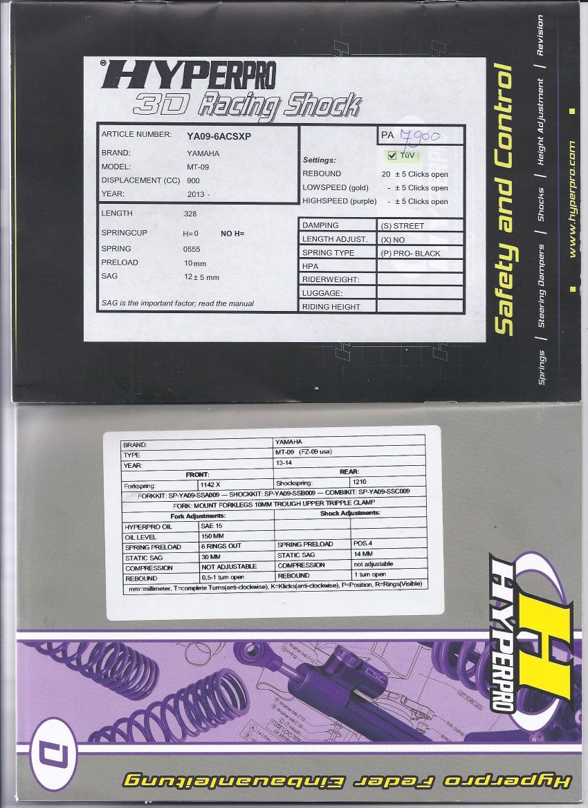 #58 Zitat von TeambanzaiAlles anzeigenWenn du bei Hyperpro dein Gewicht angegeben hast und mitgeteilt hast ob du viel mit Sozius unterwegs bist kannst es so wie es ist einfach einbauen und freude haben.