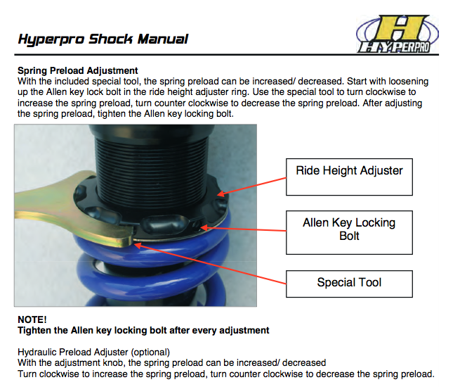 Ja das meine ich. Und ich habe mir erhofft darin ein paar Richtwerte zu finden, wie ich das Hyperpro-Fahrwerk am besten auf meine Bedürfnisse einstelle.