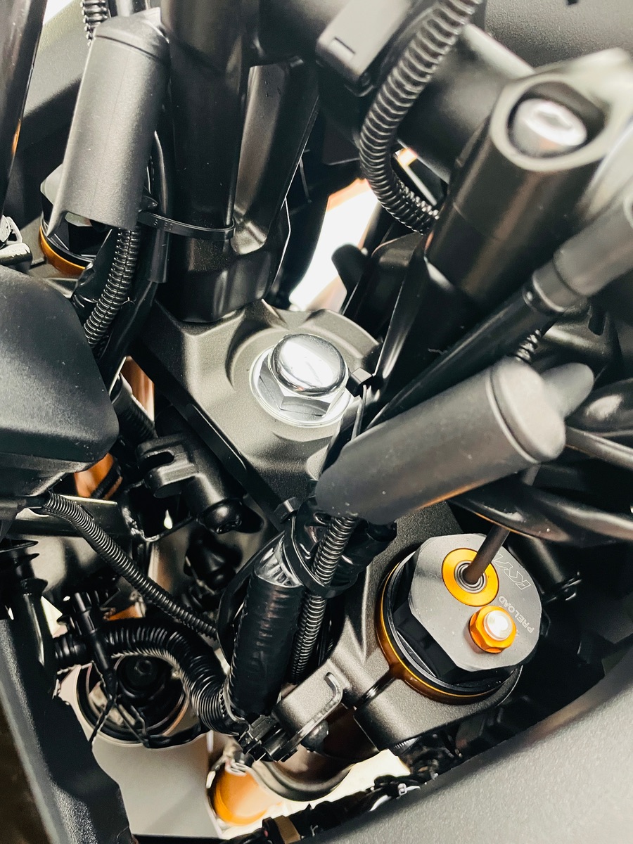 Ich bin heute mal beim freundlichen gewesen. Bei der Tracer 9GT+ waren die Standrohre genau so verbaut wie bei mir. Angeblich soll die nicht Tiefergelegt sein. Bei mir schauen die goldenen Standrohre ca 5mm aus der obdereb Brücke raus.