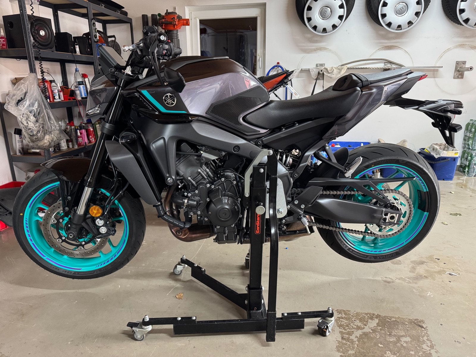 Die MT lässt sich gut aufbocken über das Constands System von Motea - den Ständer kriegt man auf ebay oft als B-Ware Artikel für 80-90€ - Die Adapterplatte gibt es bei Motea nach Rabatt für 50€