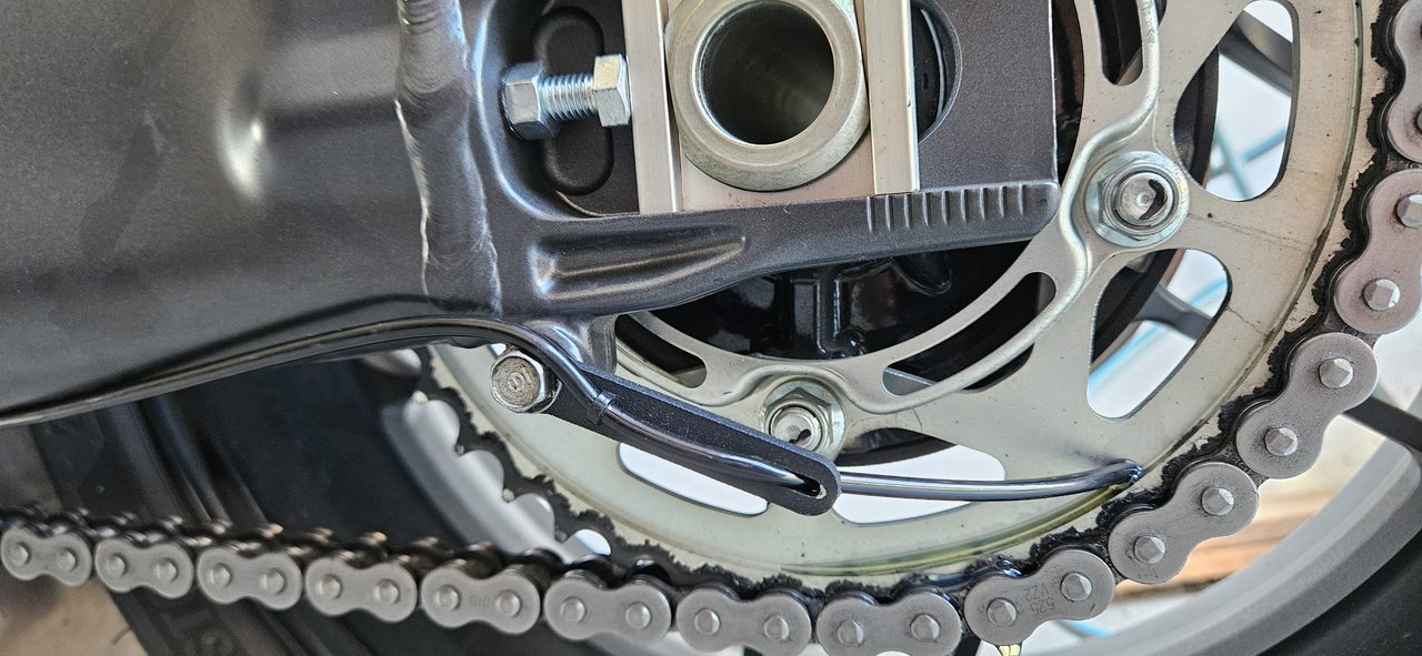 #688 Alles anzeigenIch habe den Nachbau vom Nemo 2 verbaut, bei jedem Tankstop wird gedreht.Zur Befestigung hinter der Schwinge habe ich mir die Scottoiler Halter gekauft, weil die Kabelbinder sehen einfach nur Sch.... aus.