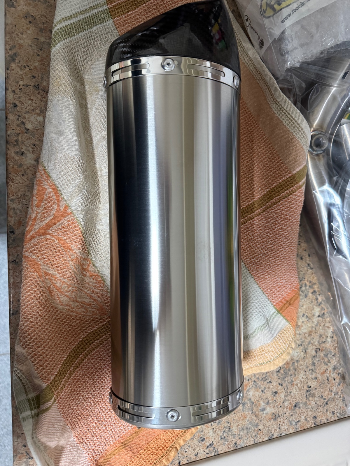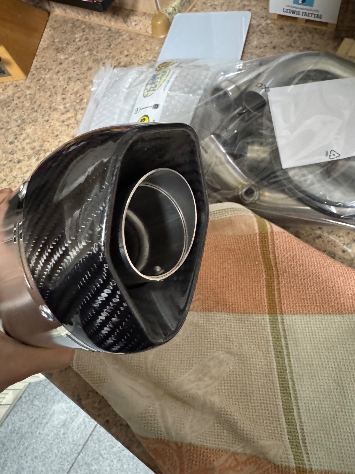 Die Halterungen waren schon leicht angezogen. Dadurch gabs ne Wölbung in der Verpackung. War vielleicht nicht so für die Auslieferung gedacht. Müssen ja eh nochmal ab. Um die Schrauben herum verölt…. Naja wohl normal heut zu Tage. Ansonsten gefällt es mir. Die Tage kommen Bilder mit Moped