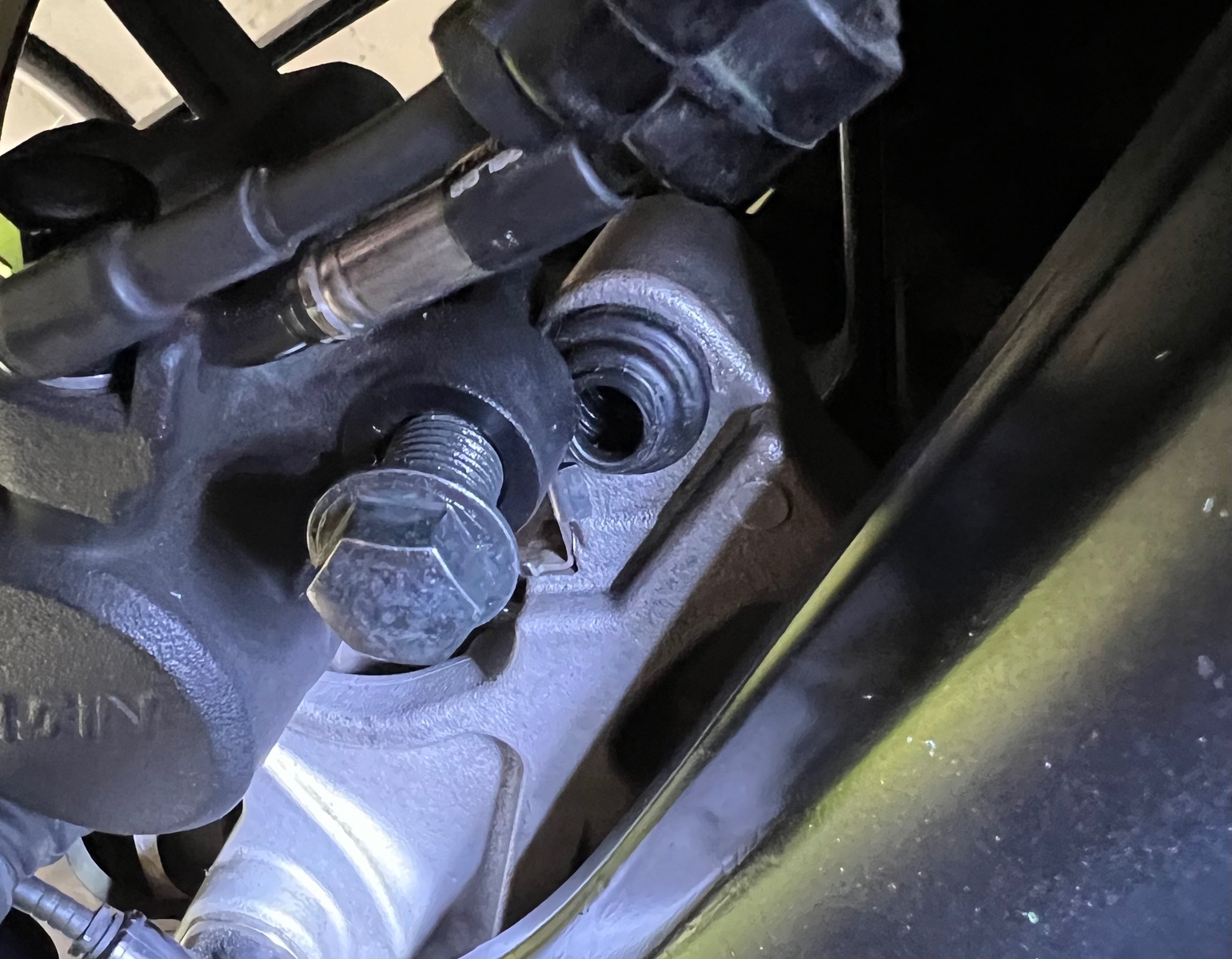 Das Gewinde im Bremssattel ist ebenfalls intakt und weist keinerlei Macken auf.