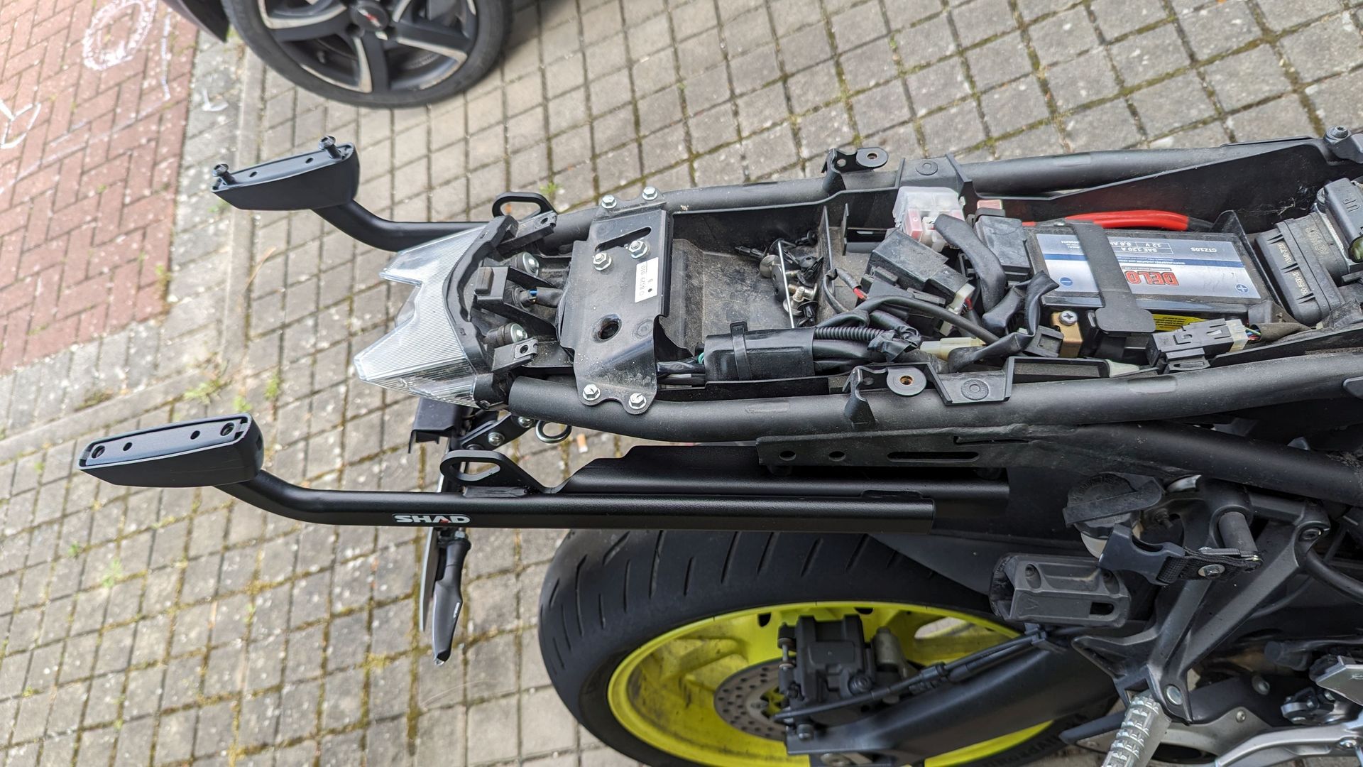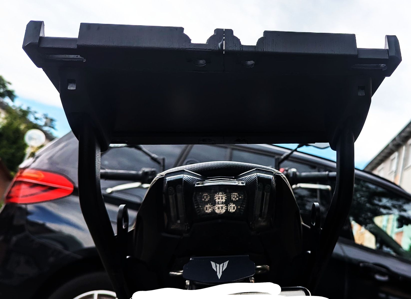 Also muss ein Gepächträger her, der allerdings das Erscheinungsbild meiner MT09 doch deutlich negativ beeinflusst.