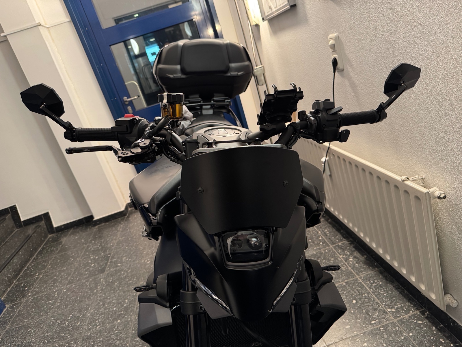 unten zwei Fotos von heute direkt nach der Abholung beim Händler - und ja ich weiß, das Yamaha Top-Case ist groß und hässlich, aber zwei Helme müsse irgendwo hin. Ich fahre jeden Tag (Pendeln zur Arbeit) und ganzjährig, besitze kein Auto... da muss es (auch) mit der 09 praktisch sein. Mir gefällt die Farbe gut und ich bin glücklich mit meiner Auswahl an Anbauteilen.