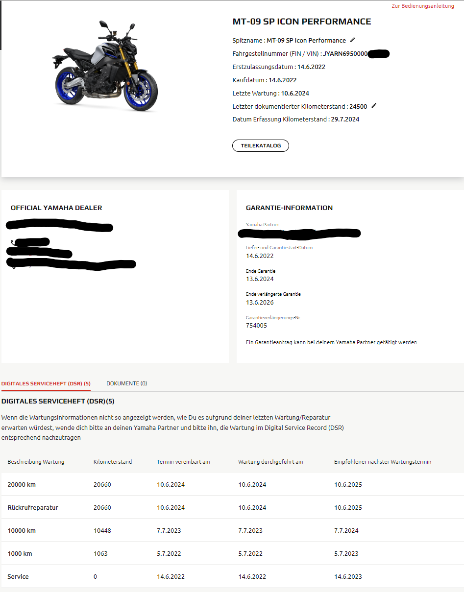 Verkaufe hiermit meine sehr gut gepflegte MT-09 SP aus erster Hand. Das Motorrad ist Um- und Unfallfrei. Alle Inspektionen wurden in der Vertragswerkstatt fristgerecht erledigt - Rechnungen sind vorhanden. Das Fahrzeug verfügt über eine Garantieverlängerung bis 06.26. TÜV wurde diesen Monat erst mängellos gemacht. Der Reifen (CRA4) hat hinten ca. 3,5 mm Profil vorne sind es knapp 4 mm. Das Fahrzeug wurde immer warmgefahren. Die SP Connect Handyhalterung wird nicht mitgegeben. Leider sind auch ein paar leichte Kratzer im Lack vorhanden.