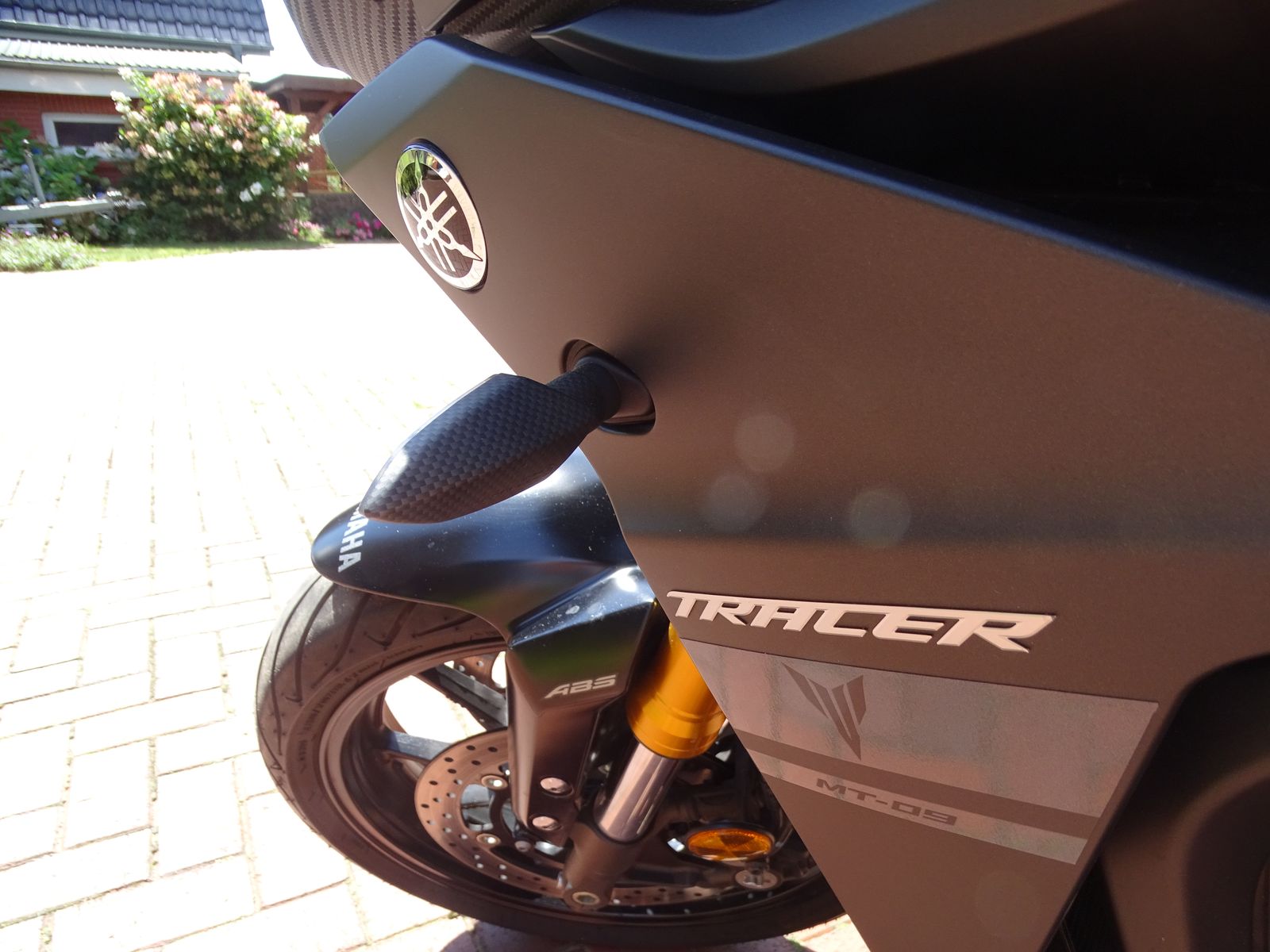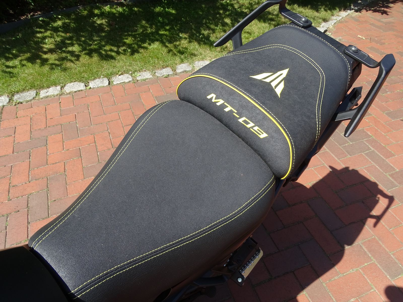 - durch professionelle Polsterei (für Motorboot und Motorrad in Kiel), hochwertig überarbeitete und aufgepolsterte Sitzbank (siehe Fotos) in 2023 für über 400 €. Mit feinem Stick der Modellbezeichnung MT-09 und dem Yamaha Tracer Logo