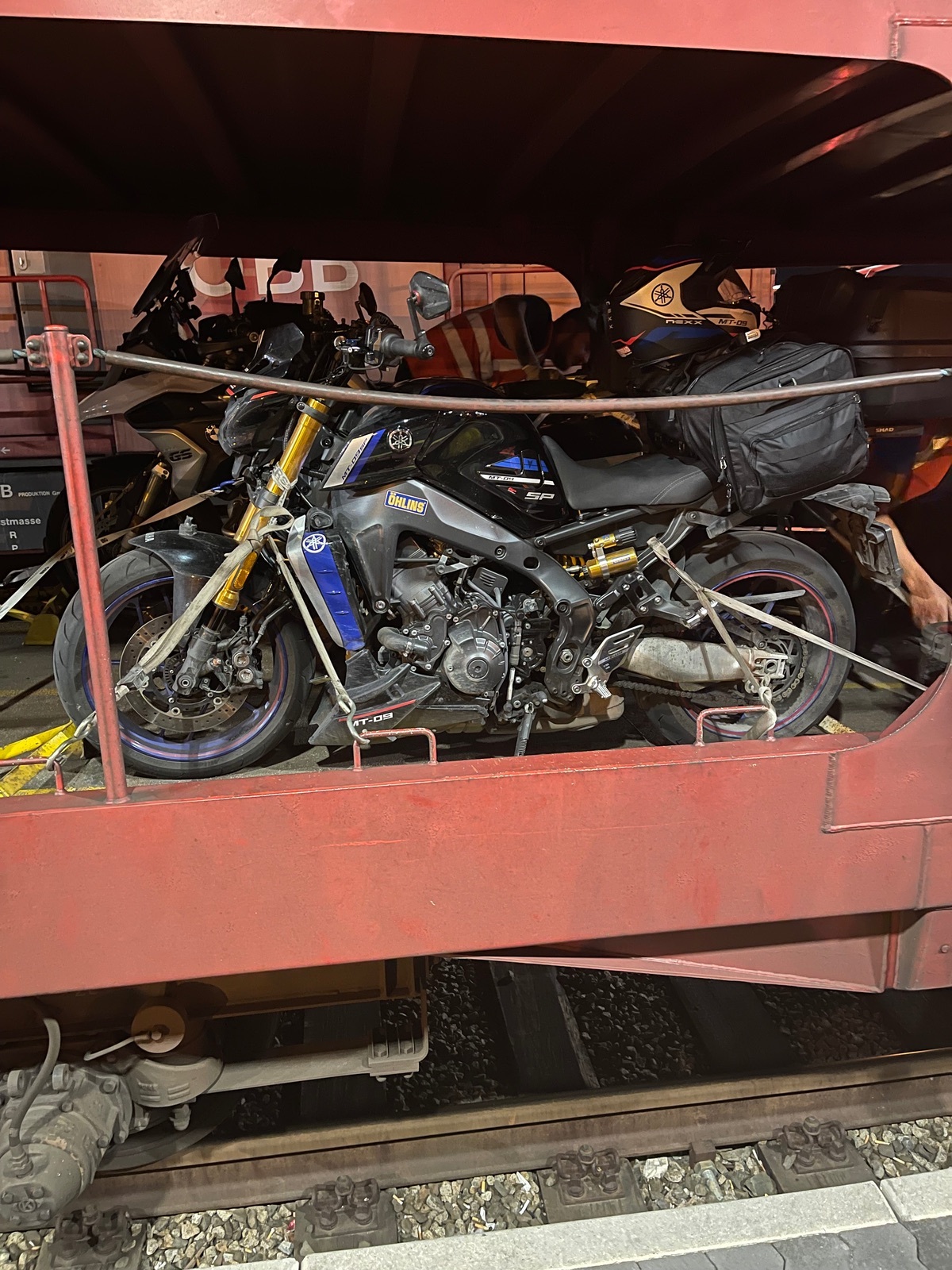 Am Samstag Abend luden wir also unsere Maschinen auf den Autozug und bezogen die Schlafkabinen. Romeo und ich hatten jeweils eine Minicabin(die ist wirklich mini) und das Ehepaar eine zweier Schlafkabine mit etwas mehr Luxus.