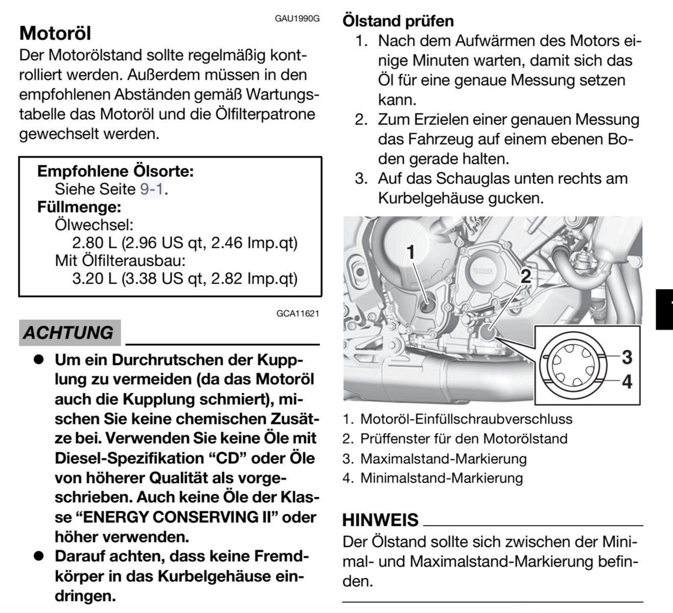 Bei der 900'er kommen eher 3 bis 3,2 Liter rein. Mit Filterwechsel!