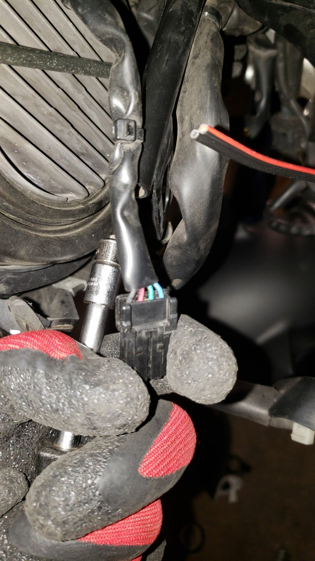 Ich habe mir die Verkabelung vorne beim Scheinwerfer mal genau angesehen und festgestellt das nur ein 4 Poliges Kabel von der Lichtkontrolleinheit hoch zum Scheinwerfer geht. Das musste also das Kabel sein war ich brauche. Kurzerhand das Steuergerät/ Lichtkontrolleinheit abgeschraubt und die Stecker gezogen. Auf der Box selbst und auch in den Steckerbuchsen steht nix von Pinnummerigung oder so. Also Kabel was zur Lichtbox geht wieder ran und dann mal laufen gelassen. Dann hab ich den Stecker doch nochmal ab gemacht und musste feststellen das das 4 Polige Kabel nicht die einzige Stromversorgung für den Scheinwerfer sein kann. Denn das Standlicht leuchtete trotzdem, auch wenn die Box komplett abgesteckt war. Dann wieder ran mit der Stromversorgung für die Box und dann den 4 poligen Ausgang gemessen. Und da war dann auch schon der Schaltimpuls fürs Fernlicht den ich gebraucht habe. Es ist auch so wie viele hier im Forum schon geschrieben haben das das - durchgeschalten wird. + scheint immer anzuliegen. War mir in dem Moment dann aber egal, ich habe mir beides hergenommen. Die beiden äußeren Kabel sind die die ich gebraucht habe. Das schwarze Kabel ist + und das blaue auf der anderen Seite ist das geschaltete minus. Kurzerhand habe ich die Schutzummantelung der Kabel auf einige cm aufgeschnitten ohne die Kabel selbst zu verletzen. Und dann die blaue und schwarze Leitung welche ich benötigt habe durchtrennt und ein abzweig eingelötet. Anschließend wieder alles mit Schrumpfschlauch abgedichtet und nochmal mit Isolierband bisschen zusammengewickelt. Damit der Schutzschlauch auch wieder zu hält.