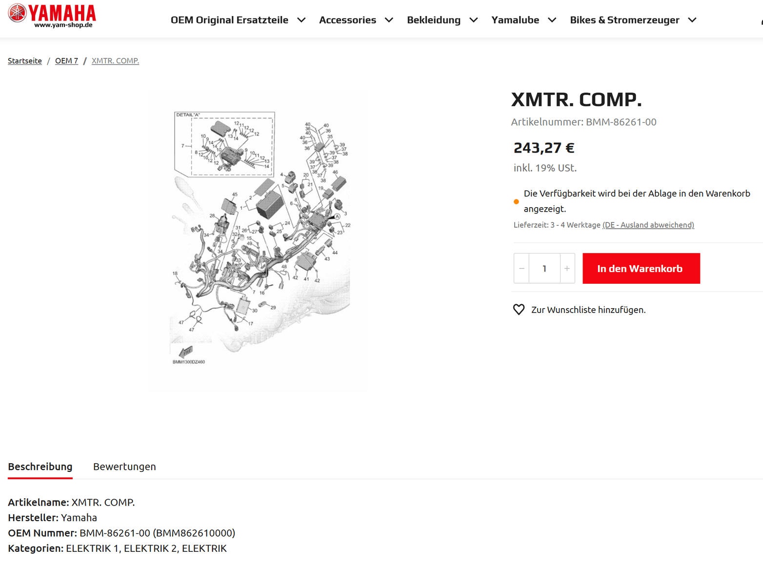 Auch das man für ein EINZELNEN Lenkerendenspiegel knapp 200€ zahlen soll...wer sowas zahlt fährt doch keine Yamaha.