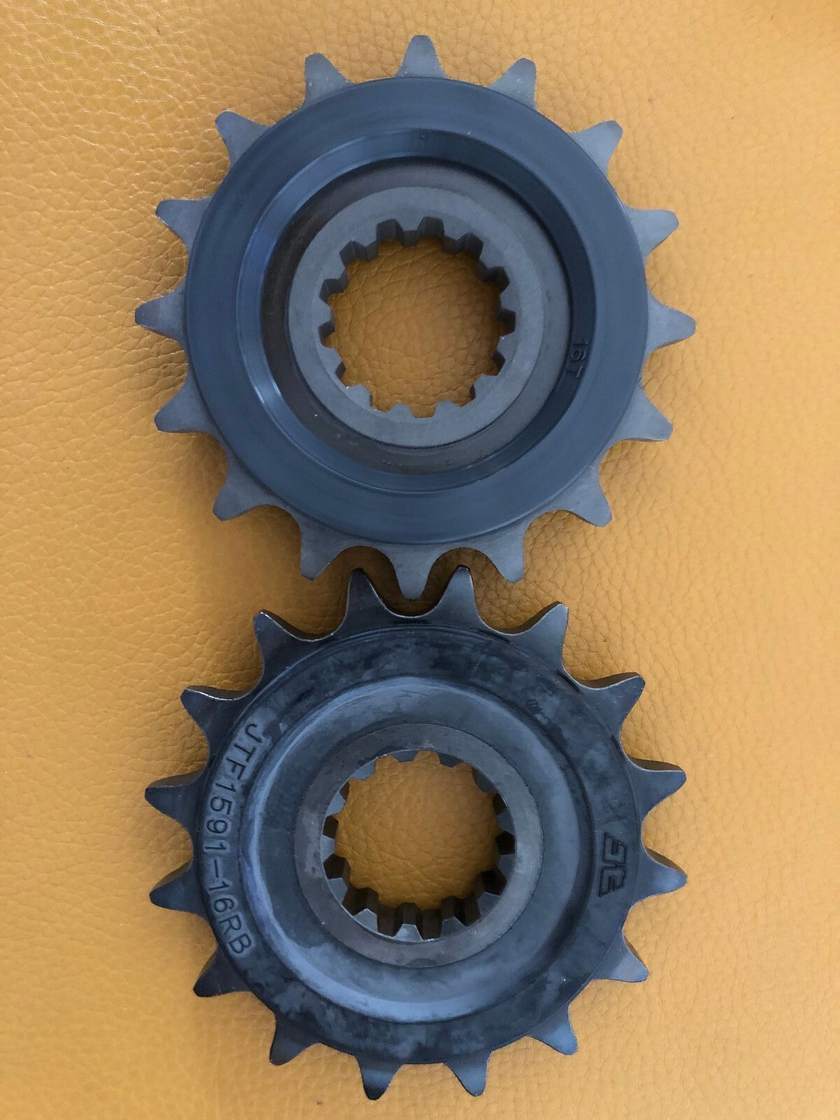 Da die Geräuschentwicklung lt. "elinap" durch den Austausch des JT Sprockets Ritzel (ich denke gegen Yamaha-) beseitigt wurde, habe ich mal das Yamaha-original Ritzel mit JT-Sprockets (beide neu) verglichen.