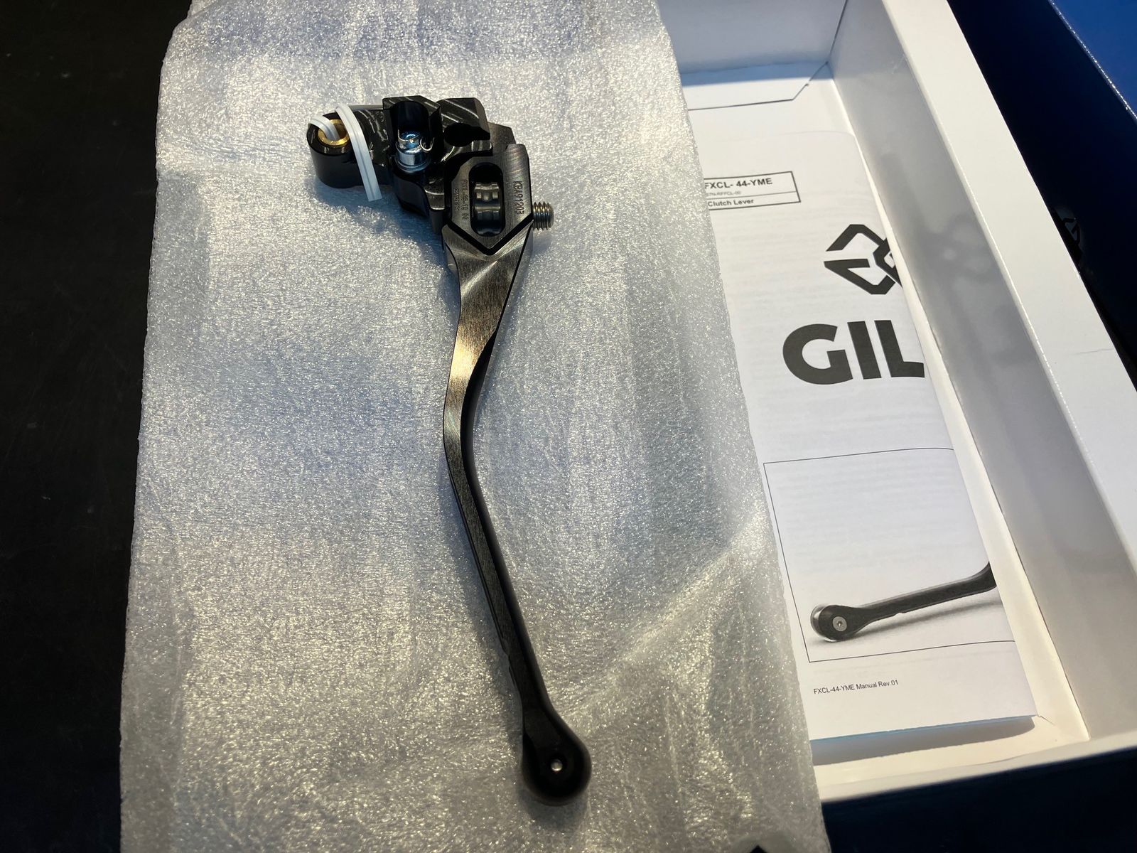 Der Kupplungshebel wurde zur Veranschaulichung ausgepackt. Der Bremshebel ist noch in ungeöffneter Originalverpackung.