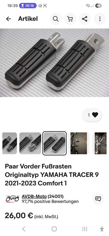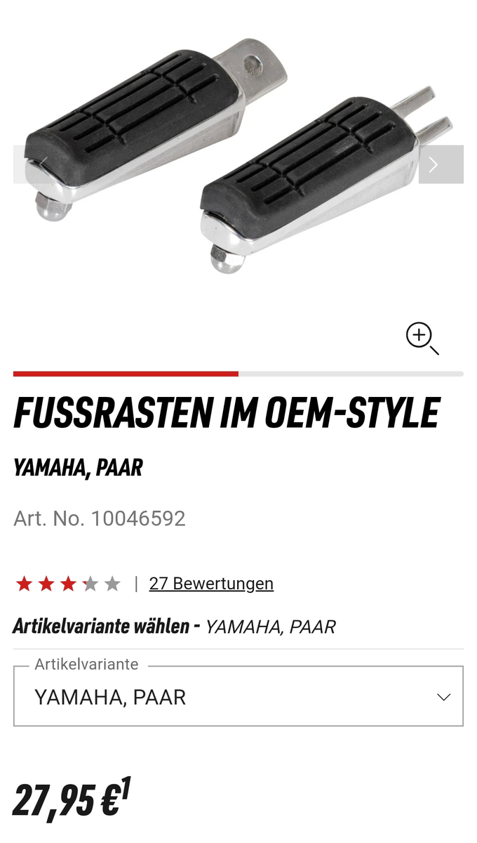 Das machte mich ein bisschen stutzig,wenn doch die Rasten nicht zulassungspflichtig sind?Finde auch gerade keine für meine MT09Tracer RN43, aber nicht falsch verstehen,wenn Ich neue bräuchte,weil alte kaputt, dann würde Ich mir natürlich gleich anschrauben.
