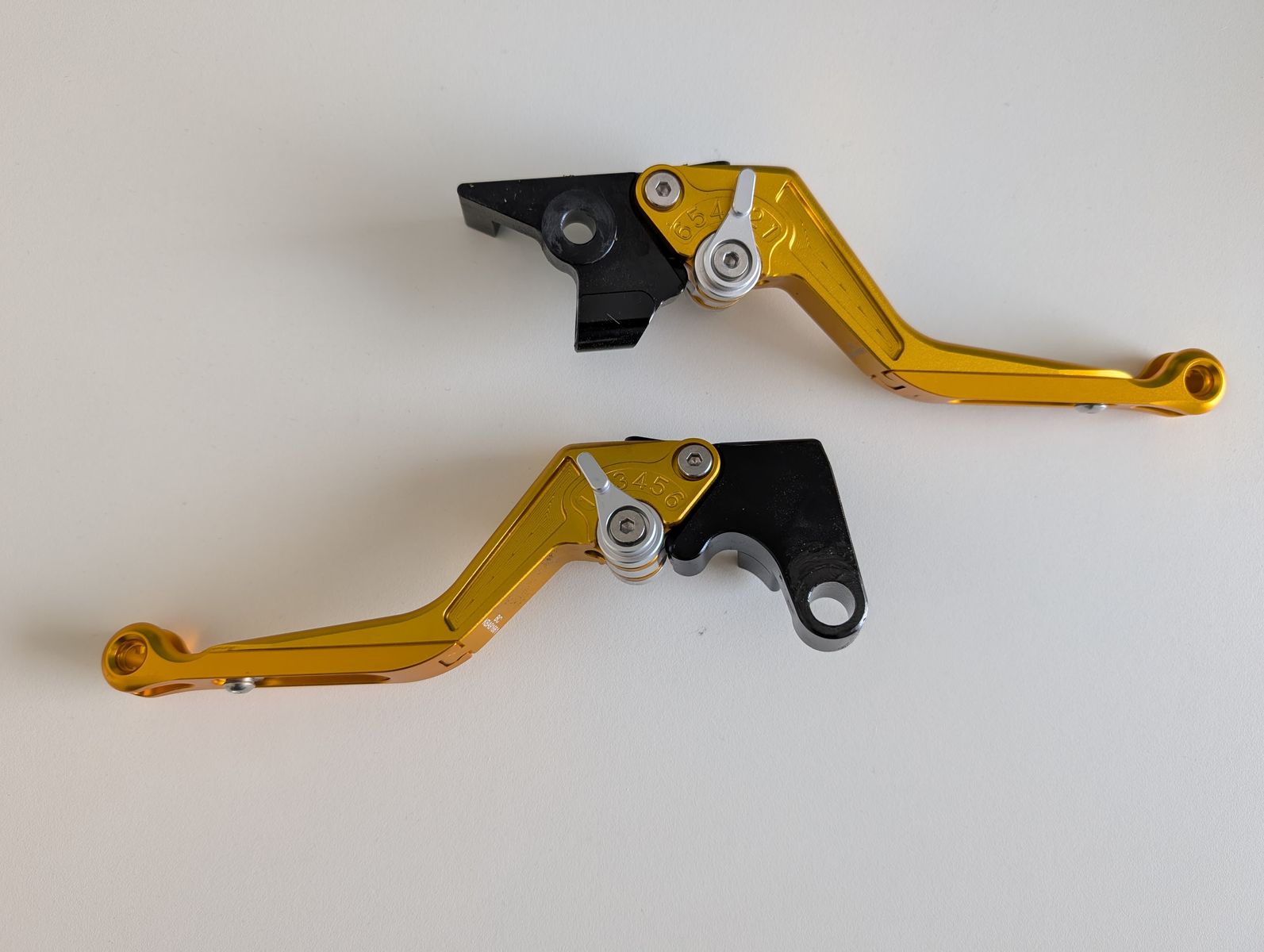 im Normalfall ist die Stellung 4 mit dem Original Bremshebel und Kupplungshebel vergleichbar und der Einstellbereich ist somit 2 Stufen weiter nach vorne und um 3 Stufen näher zum Lenker. Im eingefahrenen Zustand hat der Hebel eine Länge von 153mm gemessen vom Schrauben Mittelpunkt vom Adapter bis zum Ende