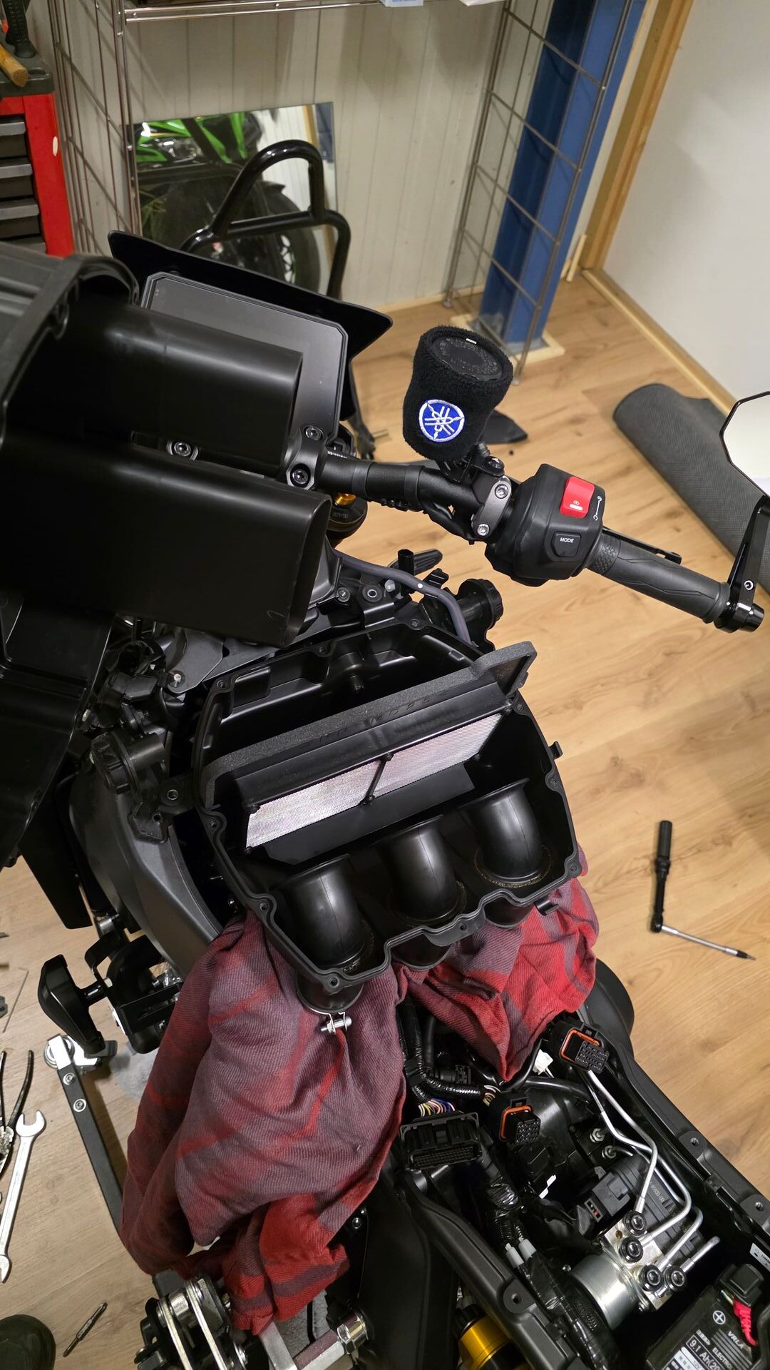 #2 Das lässt sich relativ simpel erklären, wenn du mal den Tank anhebst/entfernst und dir mal die Airbox anschaust. Anbei ein Foto.