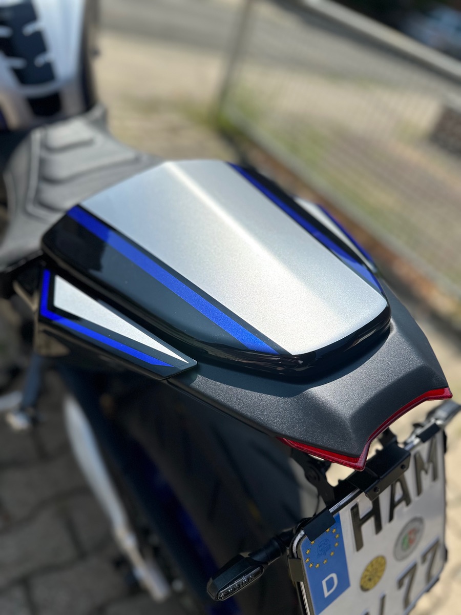 #28 Alles anzeigenDa sind 4 Haken auf der Unterseite die vorsichtig gebogen werden müssen - dann steckst Du den Soziussitz einfach drauf und die Haken zurück. Einer ist bei mir leicht „beschädigt worden“ etwas zu weit gebogen 🤷 Habe zum festeren Sitz einfach kleine Schrumpfschläuche zwischen Haube und Sitz gedrückt. Kein verrutschen etc. Passt perfekt und sieht echt gut aus. Leider auch sehr teuer. Da aus GB kommt die doofe Zollgebühr oben drauf - liege bei fast € 280🙈 Ist mir aber jeden Cent wert - hatte es gesehen und sofort bestellt.