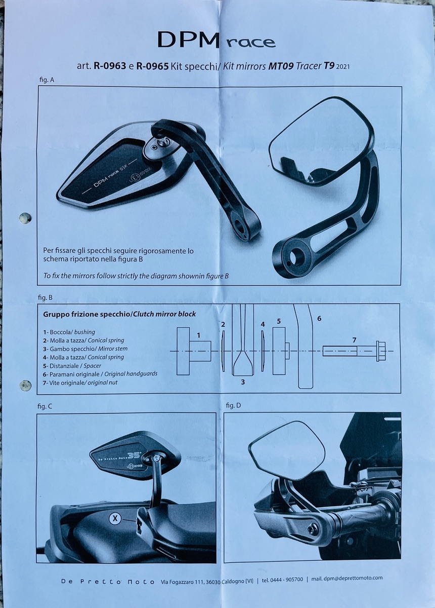 Die Spiegel passen Plug&Play zur Yamaha Tracer 9 GT (RN70, 2021-2024) und auch zu weiteren Modellen der 09er-Reihe (bitte selber checken!); die serienmäßigen Handguards können jedenfalls ohne Anpassungen weiterverwendet werden. Wenn ich den Markt richtig überblicke, sind dies die einzigen Lenkerendenspiegel für die Tracer 9, die ohne irgendwelche Bastelei passen.
