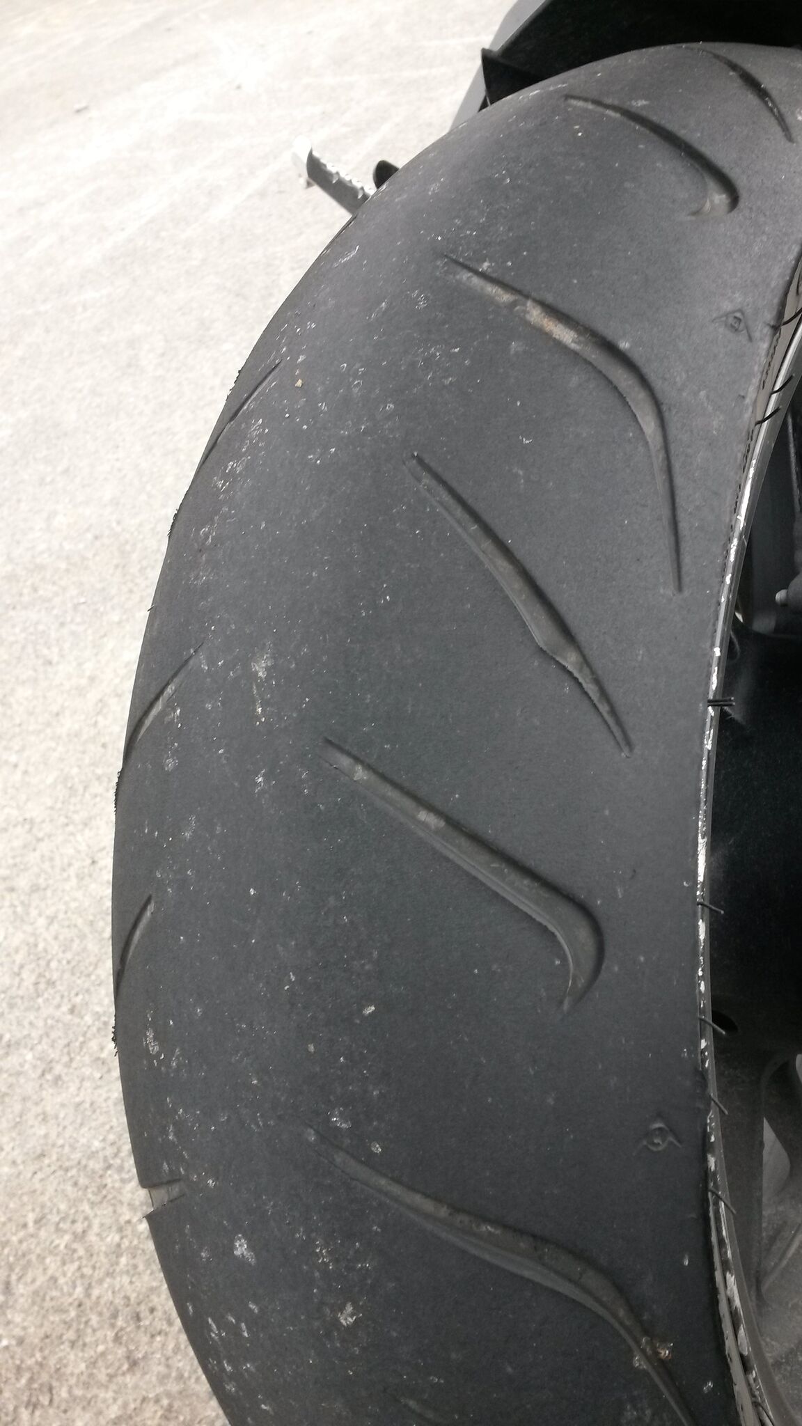 #28 heute die wohl letzte fahrt mit dem rs2 gemacht. immerhin hat er jetzt 10300km gehalten, mittig kommt jetzt die weichere gummischicht zum vorschein, die unmittelbar über der karkasse liegt. trotzdem immer noch sehr schön ausgewogen fahrbar. den rs2 finden viele ja etwas träge im einlenken, aber die mt verliert dadurch ihre nervosität. ich hab meinen reifen wohl gefunden.