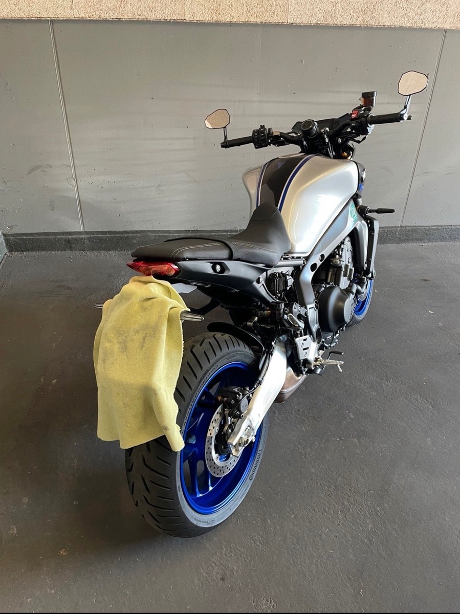Die Maschine hat 6.000km gelaufen, ist scheckheftgepflegt und hat im Mai neue Conti RoadAttack4 bekommen. Es gibt keinen nennenswerten Verschleiß. Zusätzlich verbaut wurde ein Yamaha Flyscreen, Highsider Lenkerendenspiegel und ein kurzes Heck von Bruudt. Letzter Service war im Oktober bei 5.700km. HU gültig bis 06/2027. Kein Unfall oder ähnliches.