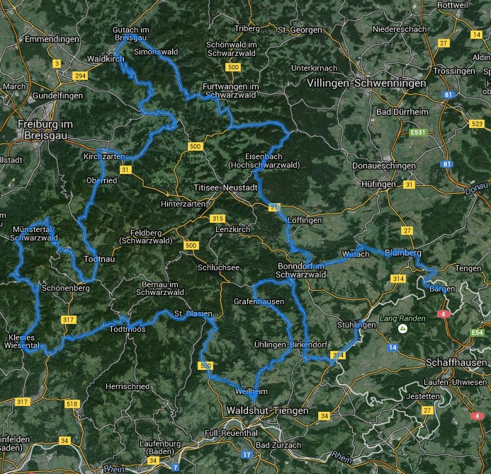 ich war heute im Schwarzwald. Bin um 09.30 von zuhause abgefahren und um 17.30 wieder heimgekehrt. Inklusive 2 mal Restaurantbesuch und ein mal tanken. es waren 570 km .