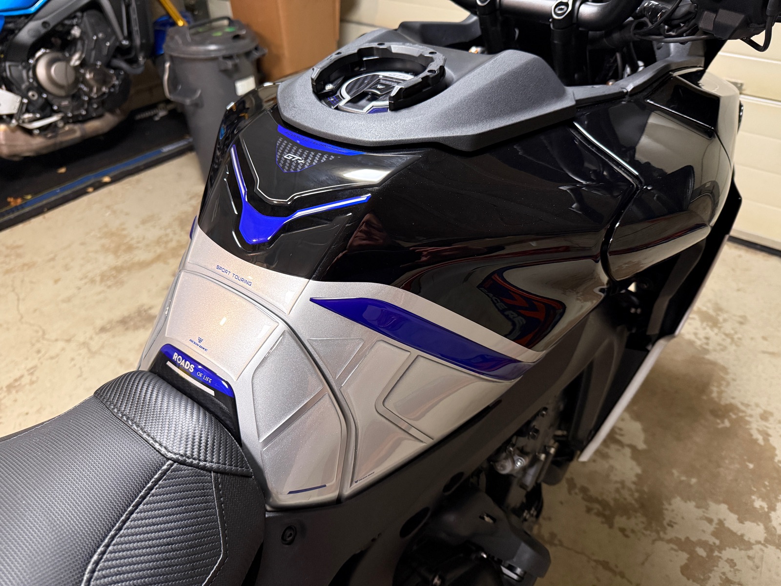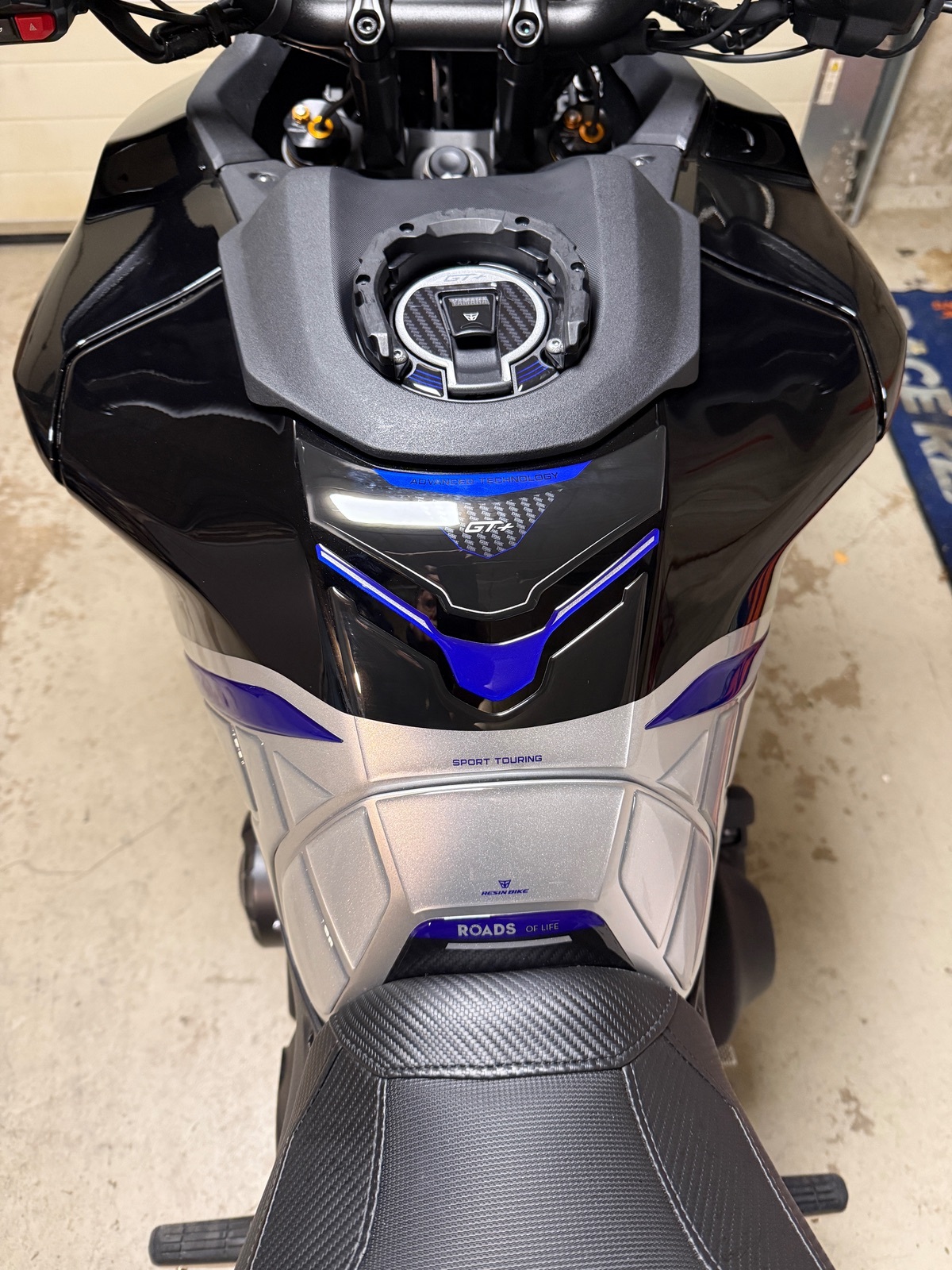 Da der Tank mit blauen Zierstreifen versehen ist und der Tank zweifarbig ist (Icon Performance), konnte ich nix von der Stange nehmen. Daher habe ich vor ein paar Wochen bei einem Spezialisten aus Italien 🇮🇹 (http://www.resinbike.com) einen Satz farblich genau für meine Tracer bestellt.