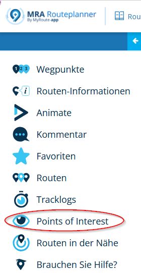 Anschließend eine beliebige Route von Dir öffnen, links in der Navigation Points of Interest auswählen,