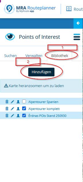 Du musst allerdings bei jeder neuen Route über die Bibliothek und das Häkchen bei der jeweiligen POI-Liste setzen, die Du nutzen willst. Wenn Du Navigation Next von MRA auch nutzt, zeigts die POI dann auch bei der Navigation an, wenn Du keinen Wegpunkt gesetzt hast.