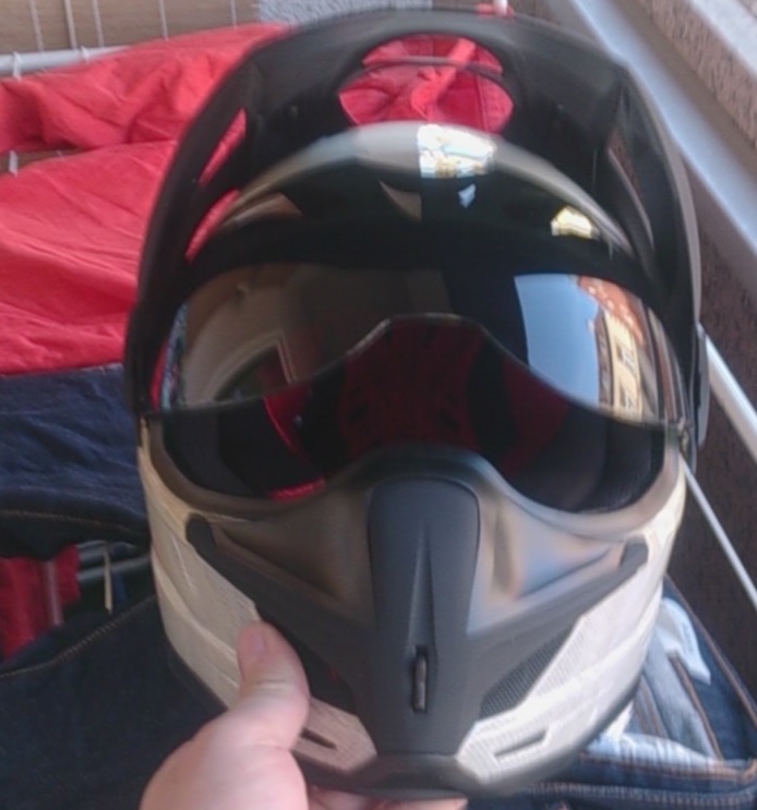 Aber man muss sagen, es ist kein Crosshelm, auch wenn er ein Visier hat, was man auch an den Luftdurchlässen sieht.