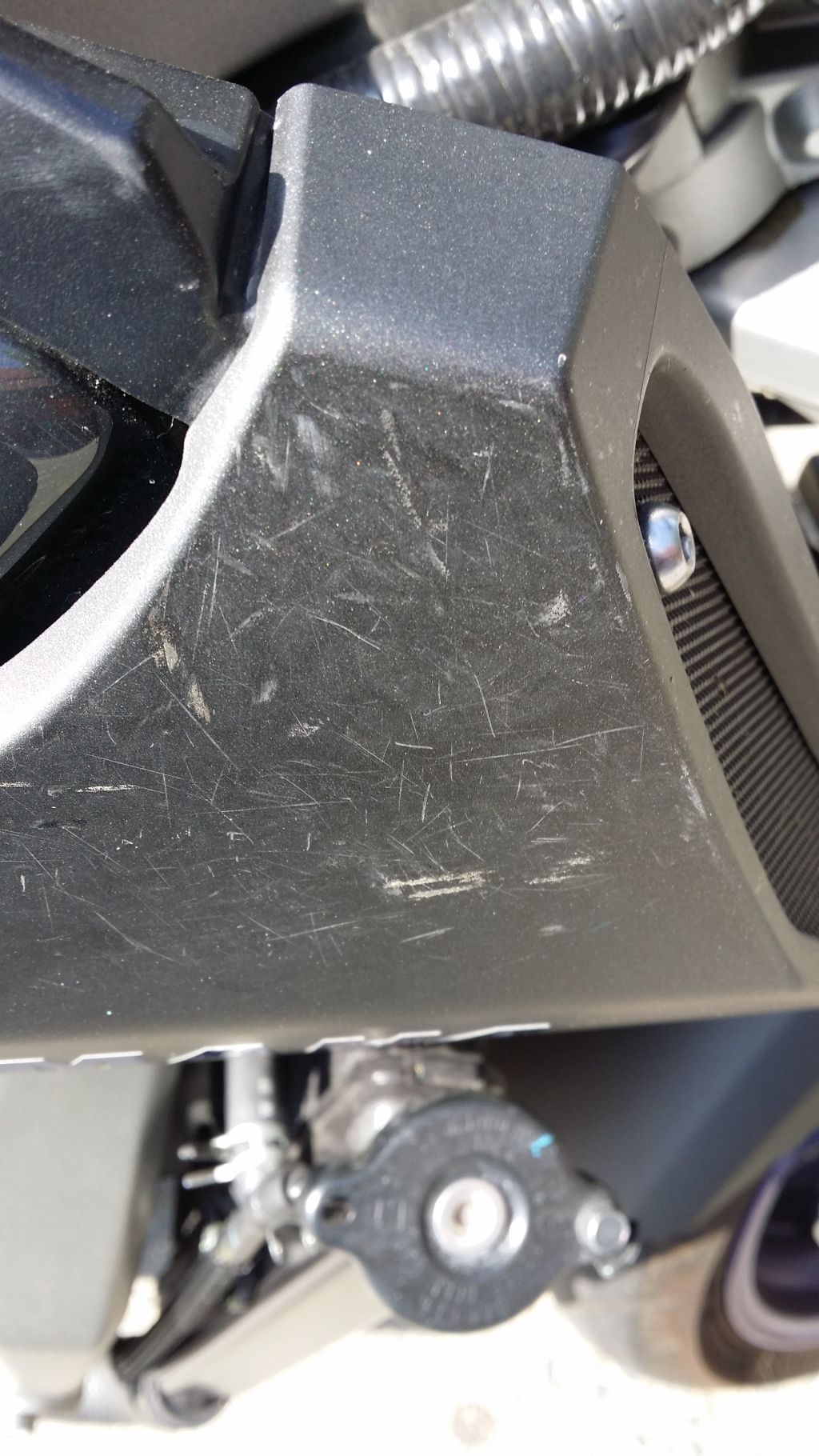 ich habe folgendes problem. An der Seite des Tanks befinden sich ganz viele kleine Kratzer, nun frage ich mich von wo die herrühren. Vermutung : Also ich habe einen Tankrucksack, da könnte der gurt etwas wedeln im Fahrtwind, aber den habe ich schon mit einem Knoten verkürzt und glaube nicht dass er für diese Menge an Kratzern verantwortlich ist.