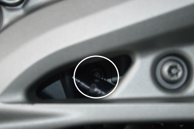 1. Schraube: Loch in der Schwinge