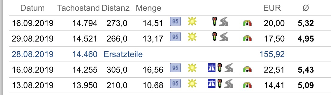 Korrigiert man den Tacho, was mit unterschiedlichen (alle illegal) Methoden möglich ist, komme ich, bei normaler, überwiegenden STVO konformer Fahrweise auf diese Werte: