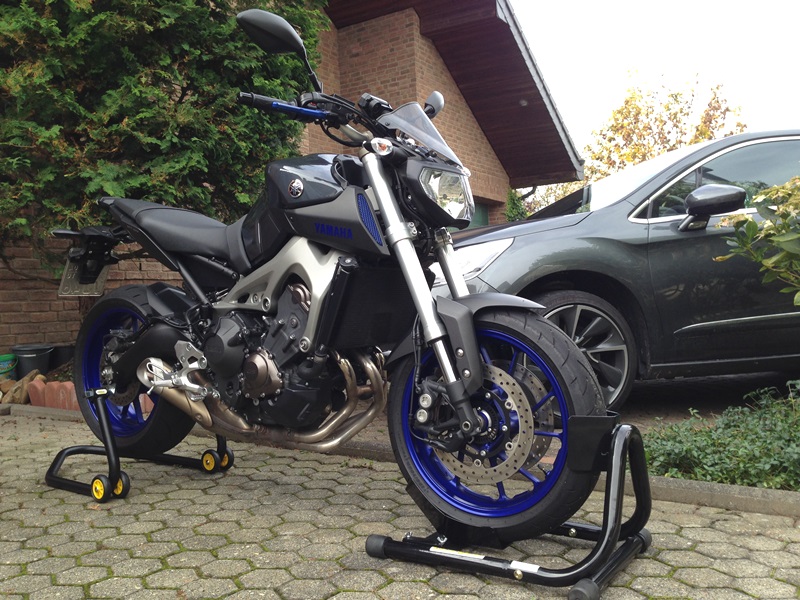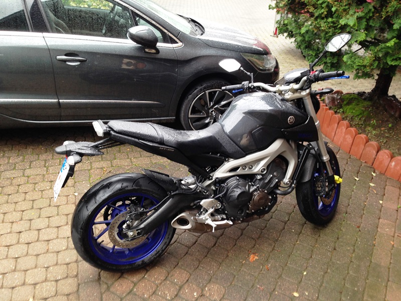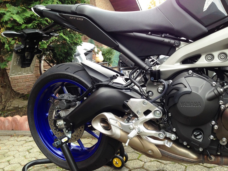 Es wurden die Soziusfußrasten entfernt, das Pinkelpötchen durch ein schwarzes von Rizoma ersetzt und verlegt.
