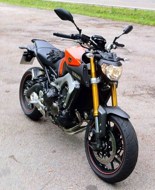 Heute also auf ein total eingesautes, aber inzwischen wieder trockenes Mopped gestiegen und los ging es auf die alte Hausstrecke, die ich zweirädrig das letzte mal vor mehr als 10 Jahren gefahren bin. Der (B) Regenmodus hat mich gestern schon aufgeregt, also war ich auf den Unterschied zum Standart gespannt. Und in der Tat haben die Gazetten nicht zuviel versprochen. Gleich beim ersten richtigen Gasgeben wurden die Arme lang und das Grinsen breit. Doch Vorsicht! Noch Film auf den Reifen, also entspanne ich mich. Nach ungefähr 15 km kommt dann die erste Strecke, bucklig zwar, aber nicht uninteressant, weil sich lange einsehbare Kurven mit ein paar kurzen uneinsehbaren Rechts-Links-Rechts Kombinationen abwechseln. Und siehe da, die Moppette braucht gar keinen Fahrer, die macht das ganz alleine! Inzwischen macht sich der Popometer bemerkbar und sagt, alles gut, die Federn federn und die Dämpfer dämpfen. So wie sie sollen.