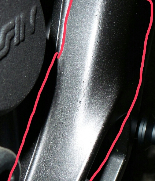 Allerdings weiß ich nicht, ob das nötig ist weil bei einem Gußteil doch immer wieder Fertigungsschwankungen bestehen:- Kleinere Macke in der Schwinge (siehe Bild)