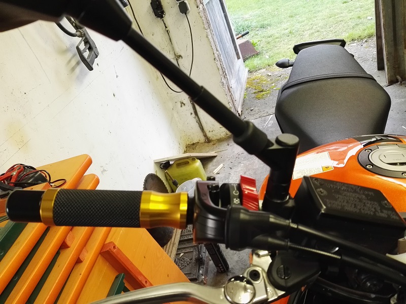 die Sicht nach hinten ist durch die Verlängerung auch super ich würde sagen die Spiegel sind jetzt auf der höhe wo sonst eigentlich Lenkerendspiegel sind