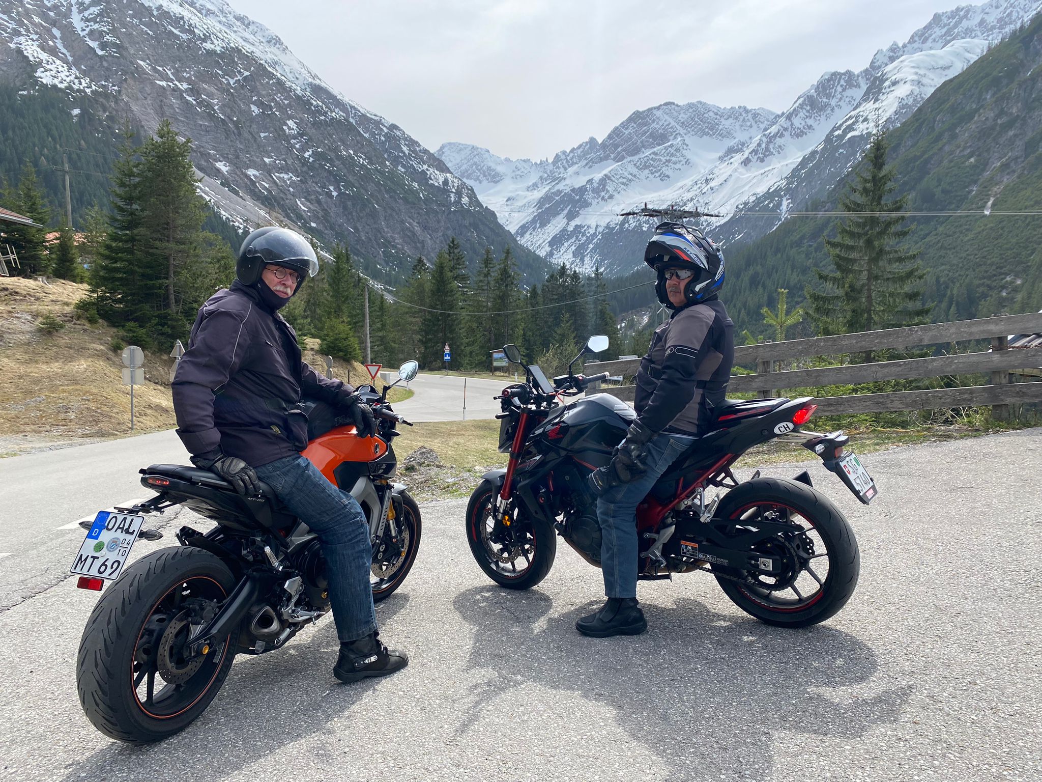 Treffpunkt war Pfronten und dann gings ab ins Namlostal, Lechtal und Tannheimertal waren natürlich auch dabei. Am Gaichtpass im Stüberl noch Vesper genossen und dann übers Faschinajoch -Sonntag-Übersaxen wieder nach Hause. Schöne 500 Km . Ich mit konformen 93 dB im Tirol. Wenn ich gewusst hätte, dass es erst ab dem 15.4. gilt, wäre natürlich die MT mitgekommen. So war es dann halt die Hornet, die sich auch nicht verstecken muss.
