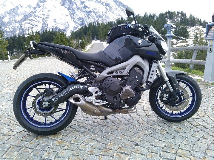 Hab das Moped am Freitag endlich abholen können und musste gleich bei strömenden Regen heimfahren. Hab bei Dauerregen den ganzen Samstag in der Garage verbracht um die Hinterradabdeckung zu folieren, Schwinge-, Felgenrandaufkleber aufzukleben, Lenkergewichte, Handyhalterung, Tankrucksackring usw. zu montieren... Am Sonntag früh war das Wetter bescheiden und aus einer geplanten kurzen Tour mit 10 km wurden 200 km und ich kam erst abends zurück :) Montag hatte ich natürlich Urlaub und nach diversen Erledigungen am Vormittag ging es am Nachmittag und zur Roßfeldpaßstrasse. Ich muß sagen: Die MT-09 ist ein Traum!!!