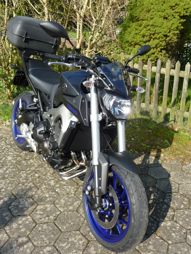 also, ich habe mir das schon von Sabine belächelte Topcase montiert. Das ist in 2 Griffen an, oder abgeschnallt. Der Gepäckträger ist der Original Yamaha, das Topcase ist von IXS und war ein Jahr lang auf einer Transalp.